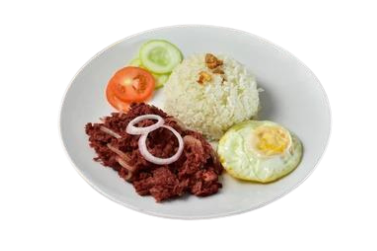 Savor the classic Filipino dish, Tapsilog, featuring tender and flavorful marinated beef (tapa), perfectly fried garlic rice (sinangag), and sunny side-up egg (itlog). This hearty and satisfying meal is beloved local favorite, offering a delicious taste of traditional Filipino cuisine.